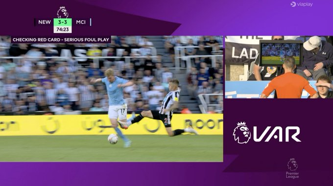 Kierran Trippier fauche De Bruyne au genou vers la moitié du terrain à la 76' minute l'arbitre donne rouge à l'anglais avant de revenir sur sa décision avec l'aide du VAR et de donner un carton jaune au latéral de Newcastle. Incident controversé qui a provoqué la colère de Pep Guardiola et de son staff sur le corps arbitral.